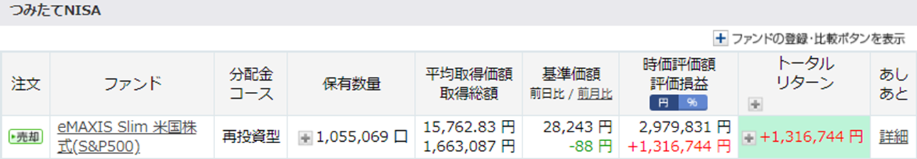 こちらの積み立て分も12月で終了で、現金が続く限りは保有し続けていきますが、現金がなくなり次第、新NISA購入のために売却を予定しております。