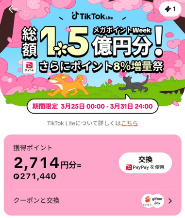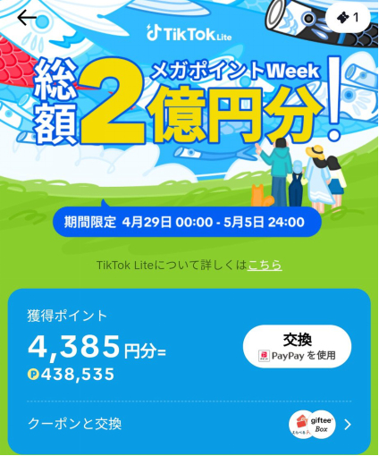 アンケートポイ活とは異なりますが、先日の記事で「TikTok Lite」に関する記事を更新していました。キャンペーンポイント以外にも、毎日のポイントもそこそこ入っているようで、月に1回このタイミングでお知らせしていこうかなと思っています。