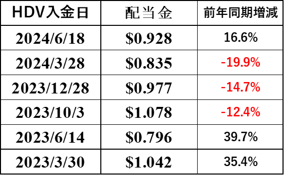 HDVは、ここ3四半期では減配でしたが、今回1年ぶりに増配ということになりました!