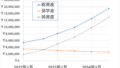 もちろん、1次関数で単純増加にはならないと思いますが、近似直線の式から計算してみると、年間配当≧年間生活費(赤直線)の達成は、