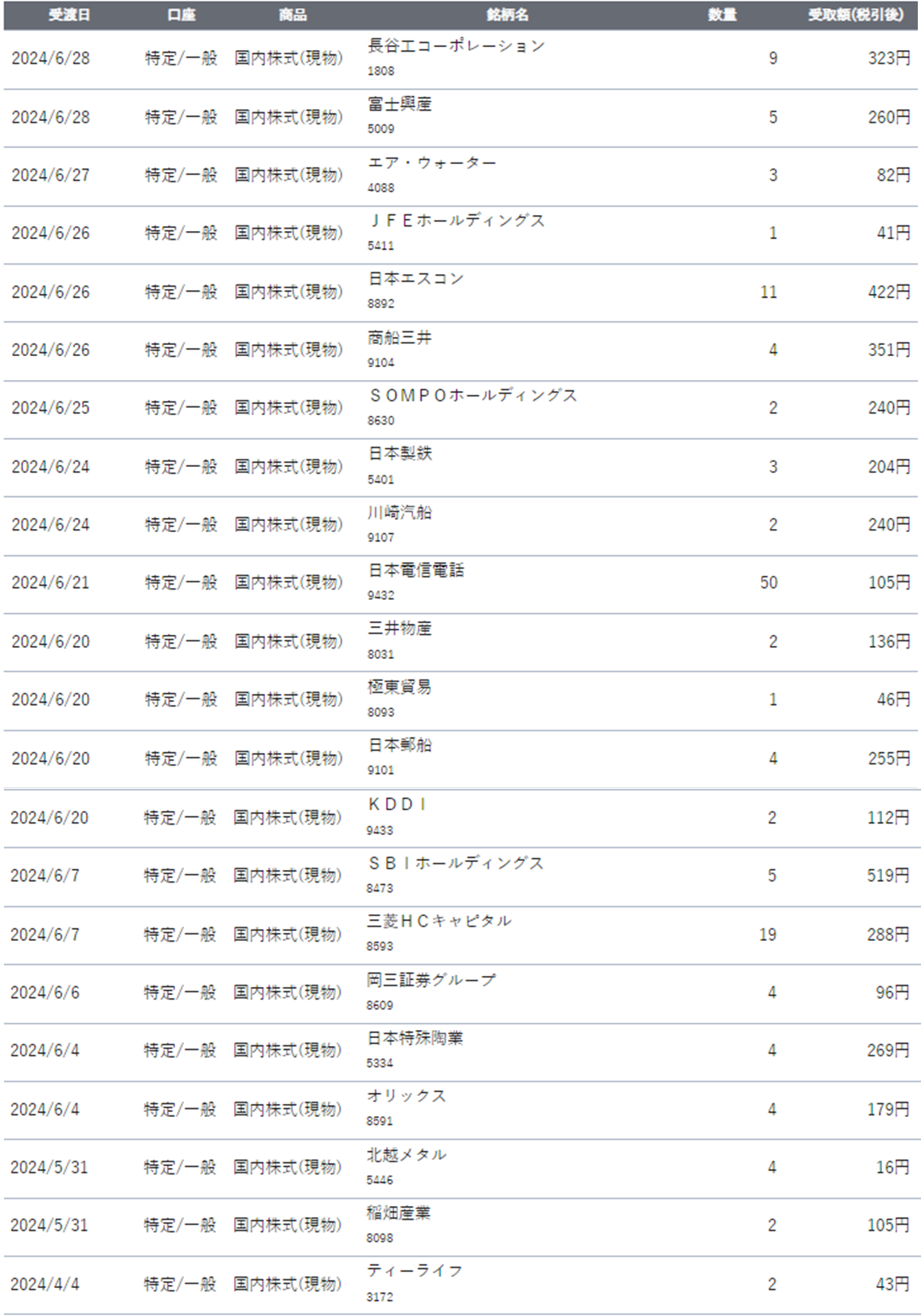 それでは早速、2024年4~6月配当の報告をまとめていきます!