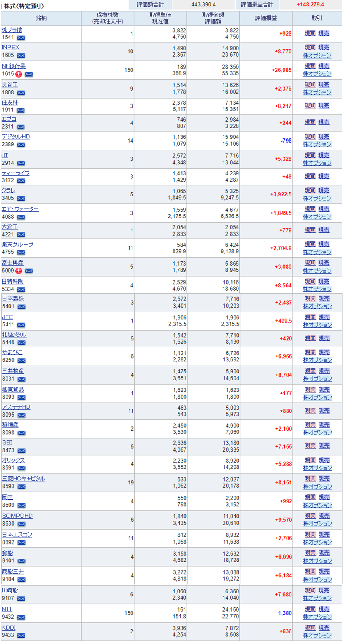 となりました。(かなりマイナスになっていたNTT株を50株買い増ししてみました。)