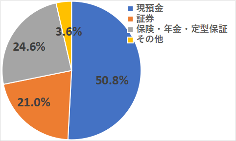 前述のデータより、金融資産をどのような形で持っているかは以下のようになっています。