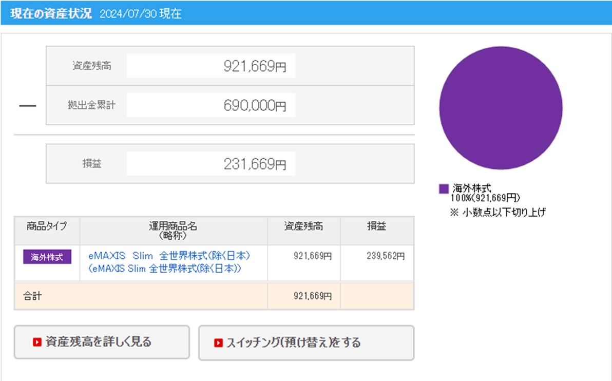 こちらの積み立て分も12月で終了で、現金が続く限りは保有し続けていきますが、現金がなくなり次第、新NISA購入のために売却を予定しております。