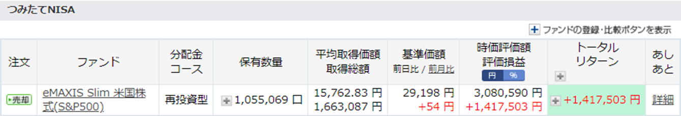 こちらの積み立て分も12月で終了で、現金が続く限りは保有し続けていきますが、現金がなくなり次第、新NISA購入のために売却を予定しております。