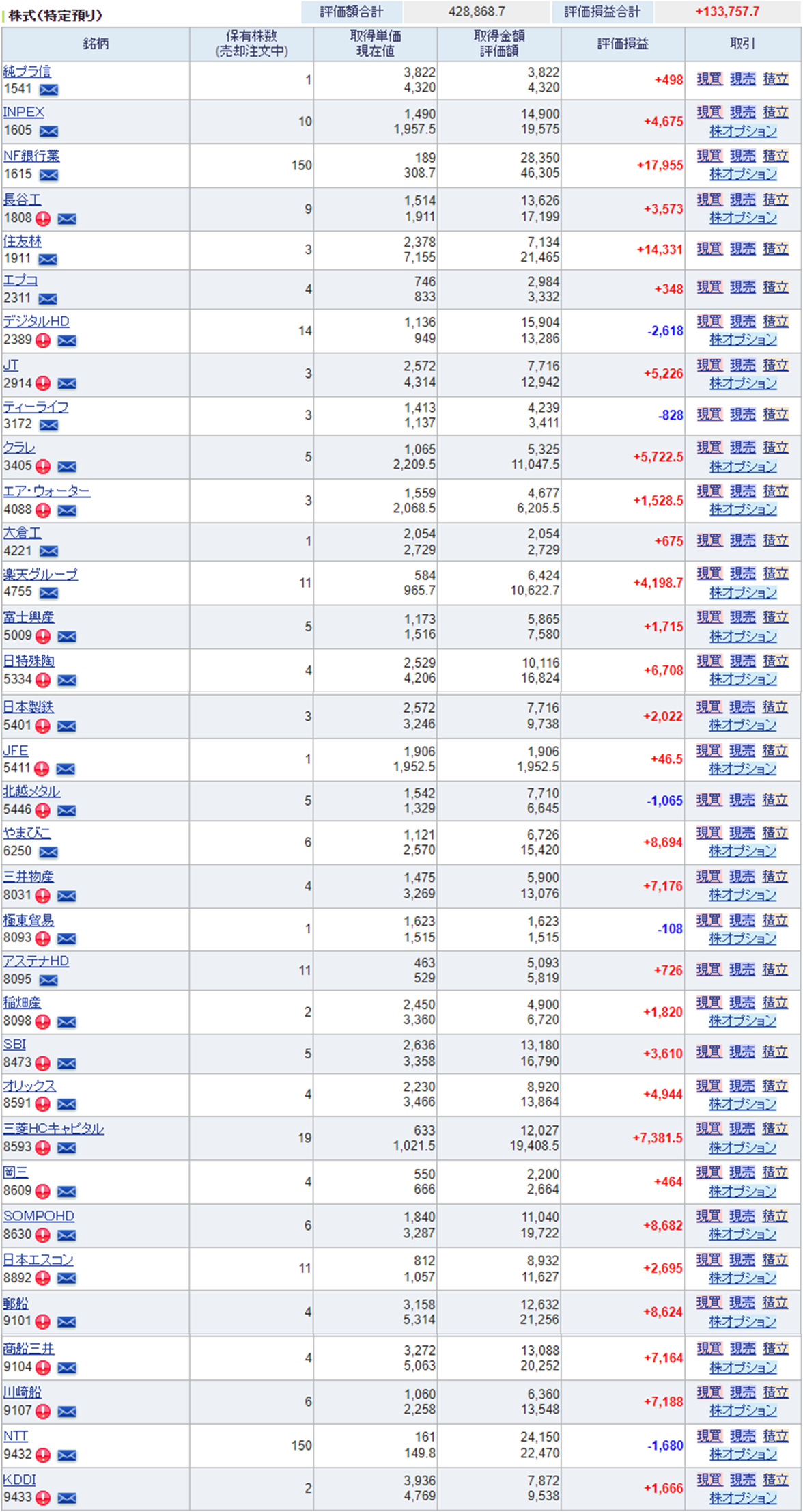 図9 SBI証券 日本株運用状況