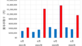 赤丸同士で比較していくと毎年右肩上がりで上昇していることがわかります。