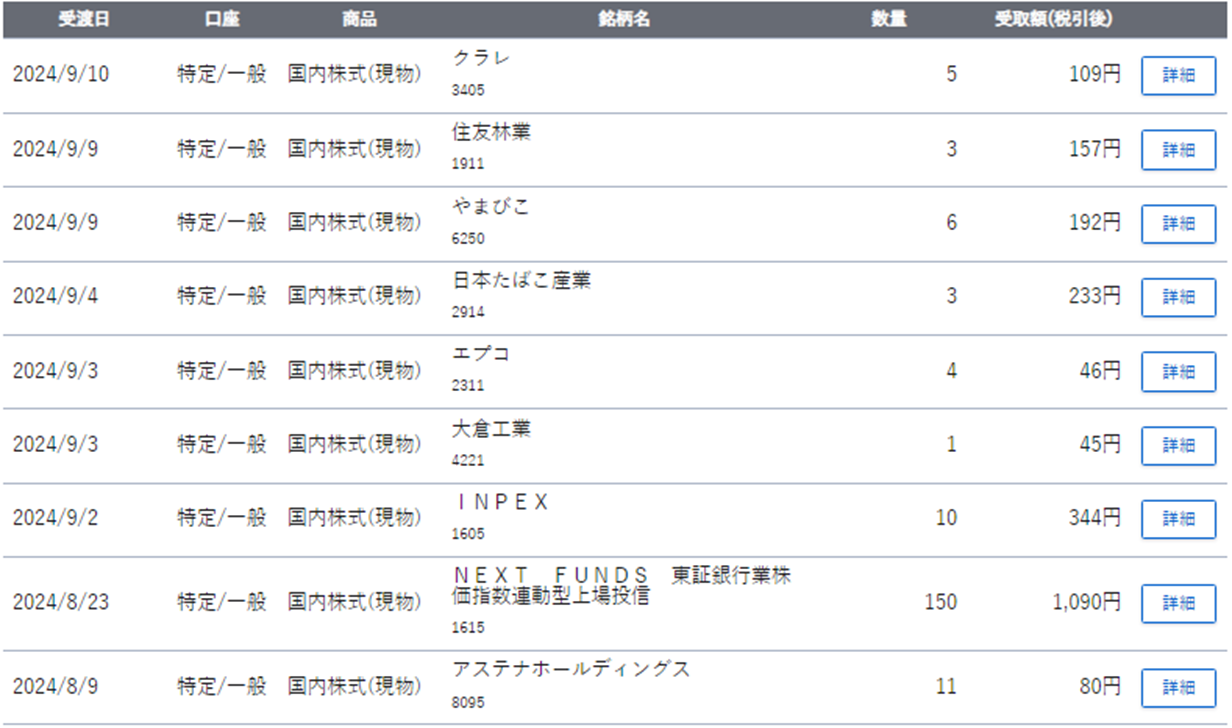 ということで、2024年の7~9月期の配当が揃いましたので、今回も報告したいと思います。