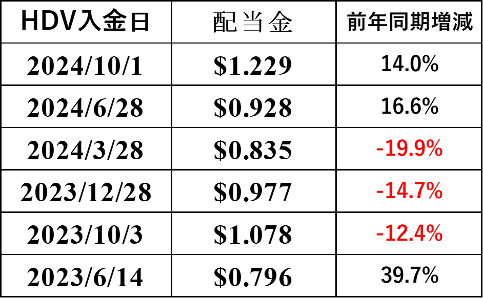 HDVは、前々回までの3四半期では減配でしたが、2四半期連続で増配ということになりました!