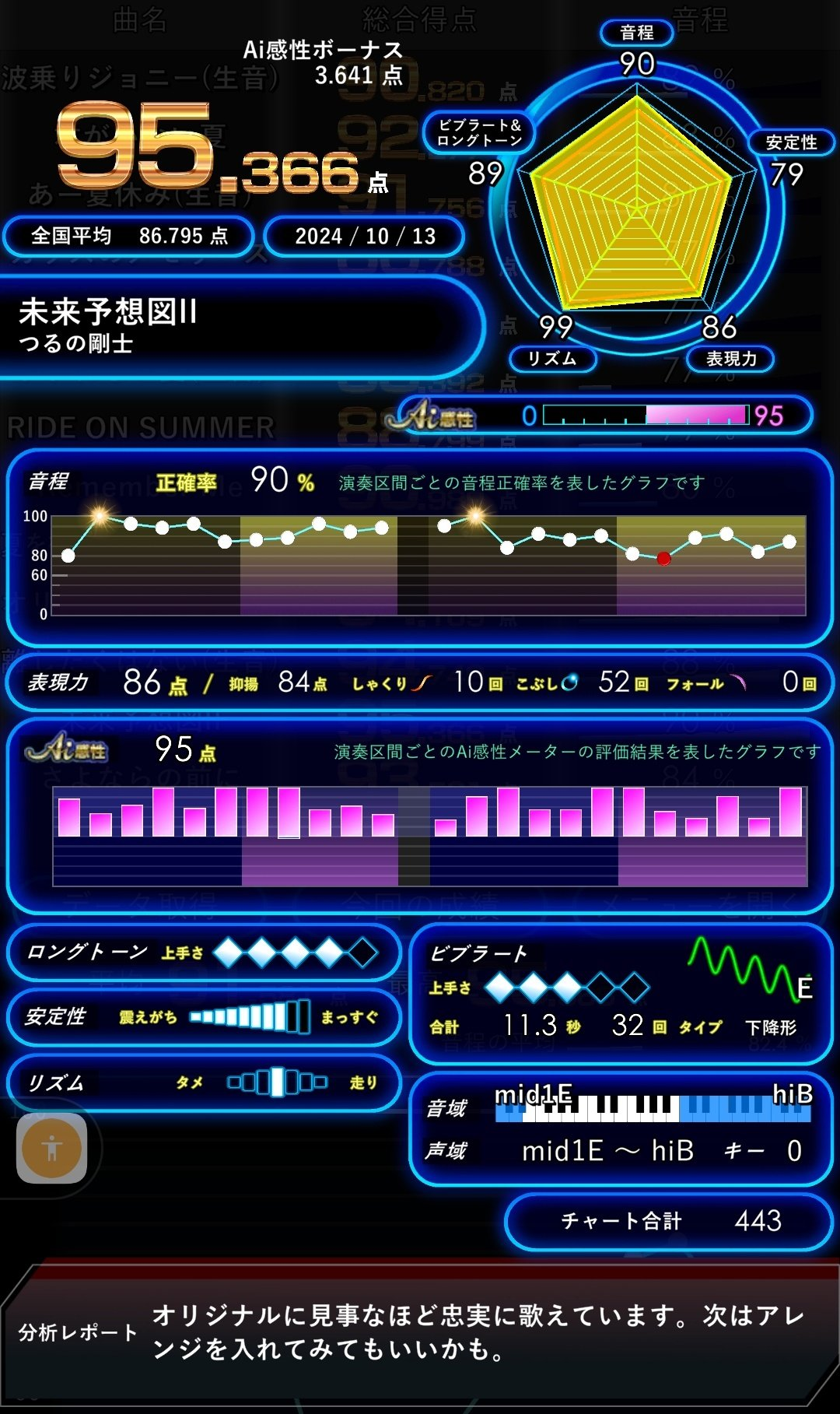 そして、前回の更新では約4か月間ぶりに94点を突破しておりましたが、その後は複数曲で94点台が出るようになり、さらに先日初めて95点台が出ました!