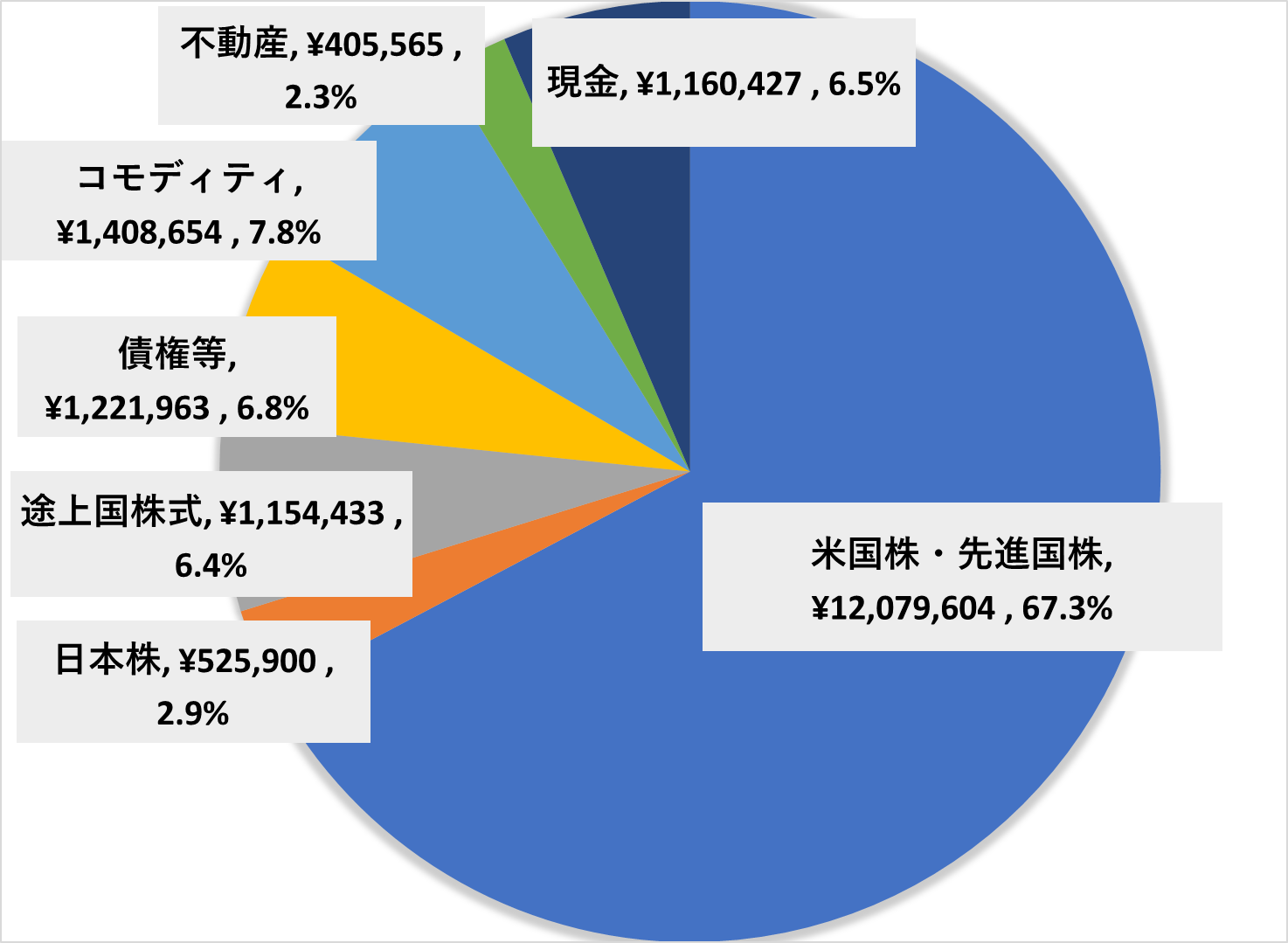 途上国については、中国やインド、その他東南アジア、アフリカ等を考えています。新NISAの積み立てが終わるまでは比率は下がっていくでしょう。現在でも6%→変更後は4.5%程度となりそうです。