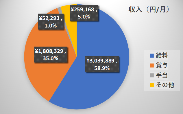 ということで、収入の合計は約516万円ということになりました。