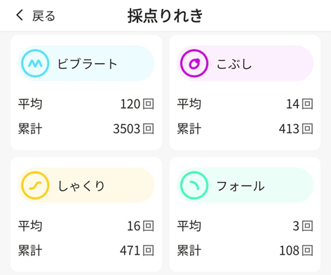 ・ビブラート判定が甘すぎ?(1曲で100回以上、150回出ることも) →確かに声が震えがちなのですが、それを全てビブラートと判定してしまうのはさすがに…。