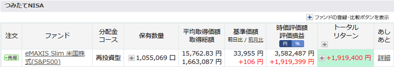 こちらの積み立て分も12月で終了で、現金が続く限りは保有し続けていきますが、現金がなくなり次第、新NISA購入のために売却を予定しております。