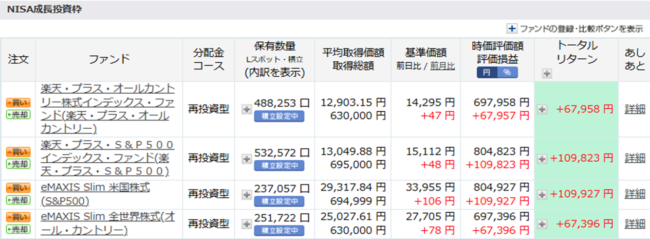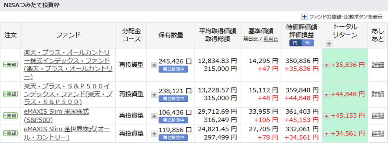 同じ積み立て額で積み立てすることによって、パフォーマンスの差を確認するために行ってきたのですが、これだけ積み立て額に差が出てしまうとわざわざ分ける必要もなくなってきたと感じています。