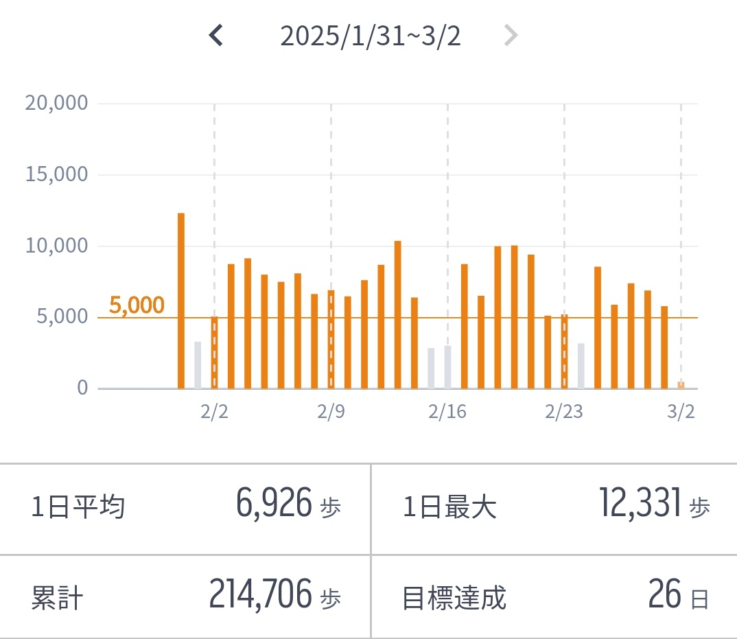 年初ということで、追加で歩数管理もしていきたいと思っています。特に1日8,000歩以上の日を増やしていきたいですね。歩数管理アプリを使って確認していきますが、達成状況については次月以降更新していきます。(私の場合、楽天ヘルスケアとVヘルスケアを利用しています。)