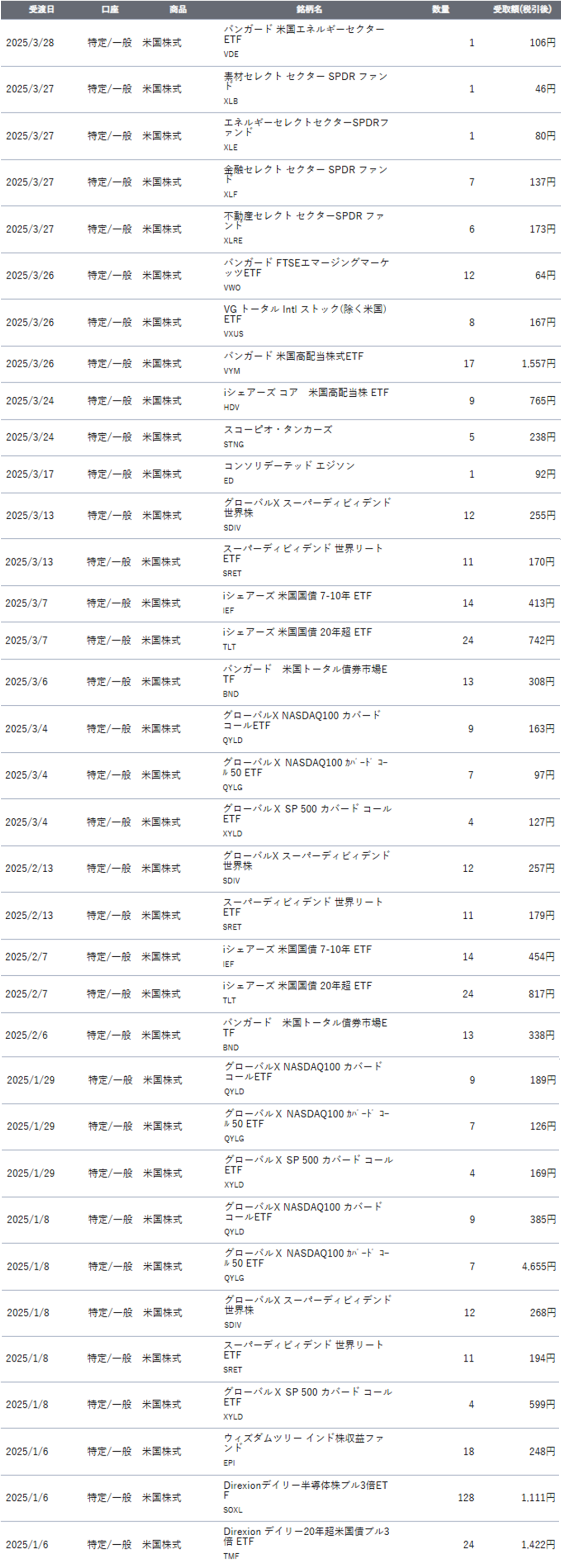 ということで、2025年の1~3月期の配当が揃いましたので、今回も報告したいと思います。