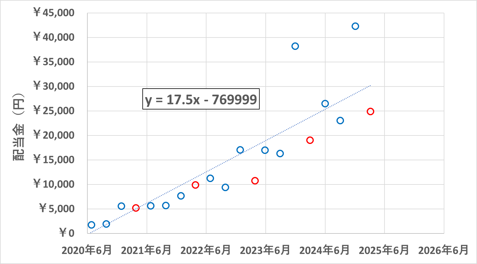 (前回12月配当の時に計算したものでは、2088年12月配当だったので、4年長くなりました(笑))