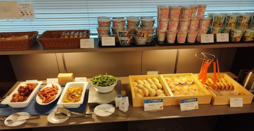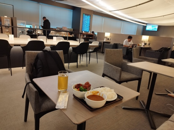 国内線ラウンジでは、飲み物の無料提供(もちろん快適な座席空間も)ということになりますが、国際線ラウンジでは軽食があるということで、空港に行く前に食事をしていなくてもOKです。プライオリティパスがあれば、無料で利用することができます。(制限あり)