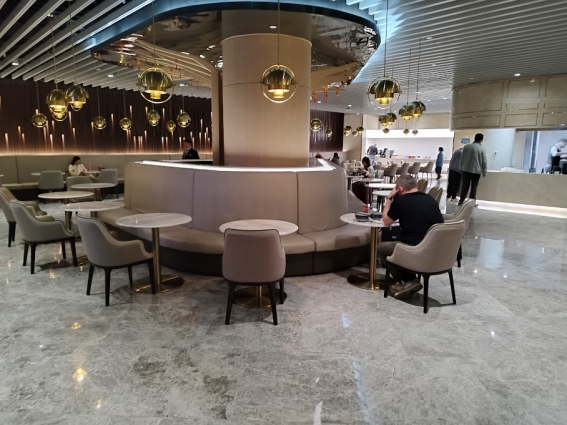 チェックインと手荷物検査して、搭乗口付近まで電車?で移動して、そこにブランド店・免税店が多くエリアがあり、搭乗口からそれほど離れていないところに今回利用したラウンジがありました。(空港内の移動に時間がかかったため、滞在できたのは1時間ほどでした。)