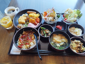 朝から結構食べているように見えるかもしれません。これで締めるか、軽くおかわりをするとちょうどよいです。おかわりするのはパン、フルーツ、ヨーグルトなどなど。