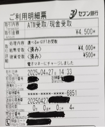 某長期調査の謝礼も入ってきています。金額は4,500円になります。
