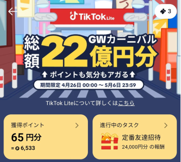 アンケートポイ活とは異なりますが、先日の記事で「TikTok Lite」に関する記事を更新していました。キャンペーンポイント以外にも、毎日のポイントもそこそこ入っているようで、月に1回このタイミングでお知らせしていこうかなと思っています。