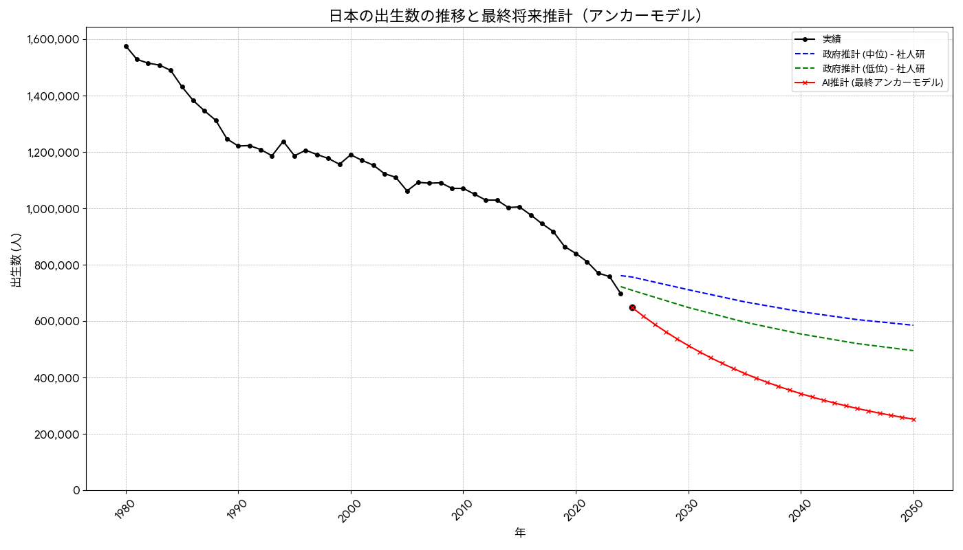 そもそも、政府は本気で少子化を止めたいと思っているのか、自分の後のことなんてどうでも良いと思っているのかわかりませんが、もはや、政府の推計よりもAIを使って自分で計算させる方がより現実的な数値を出せるのではないかと思ってしまいますよね…。