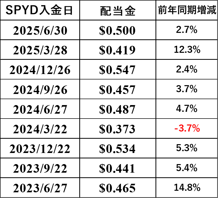 表3 SPYD配当推移