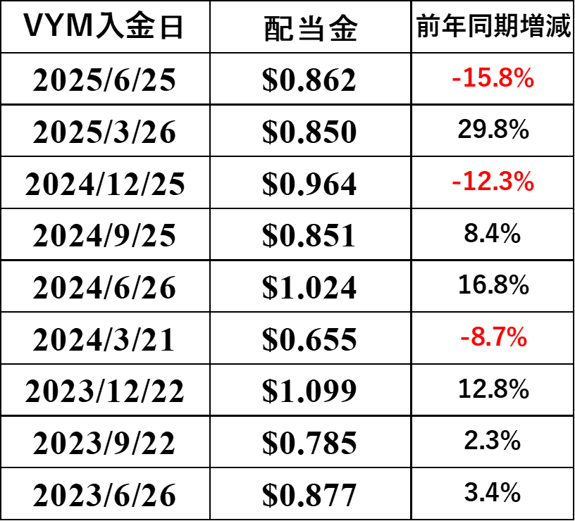 表4 VYM配当推移