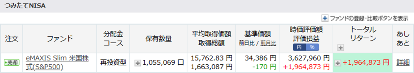 こちらの積み立て分も12月で終了で、現金が続く限りは保有し続けていきますが、現金がなくなり次第、新NISA購入のために売却を予定しております。