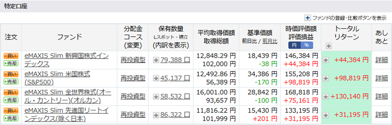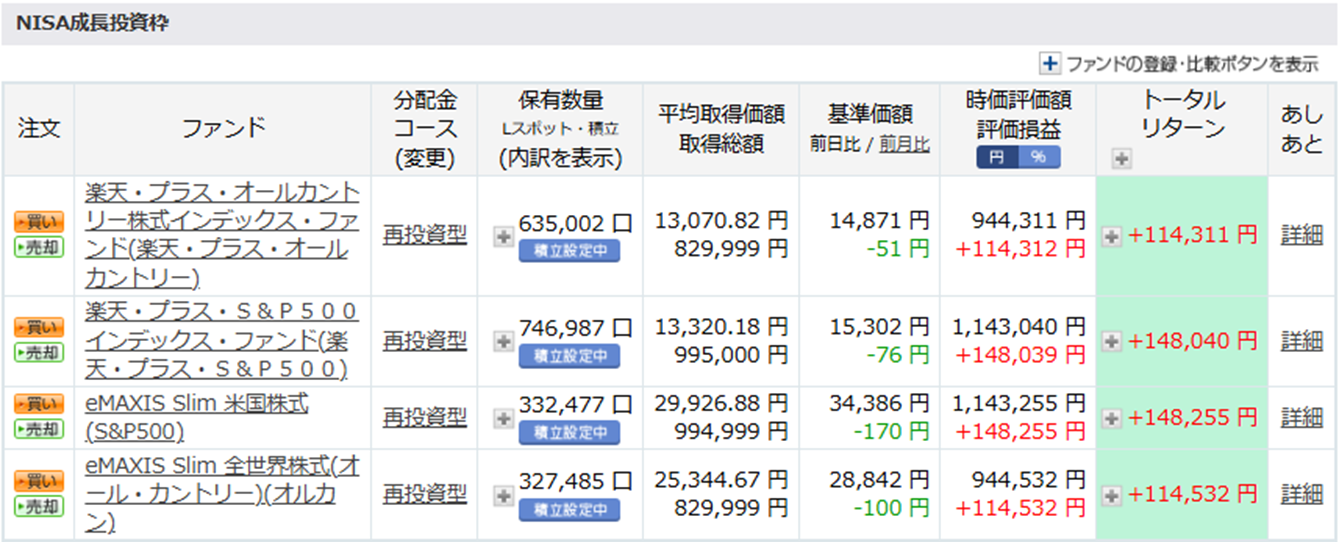 こちらも2か月前ではトータルリターンがマイナス圏に突入していましたが、プラス圏に復帰継続中です!(成長投資枠もリターンがプラス14%程度となりました。)