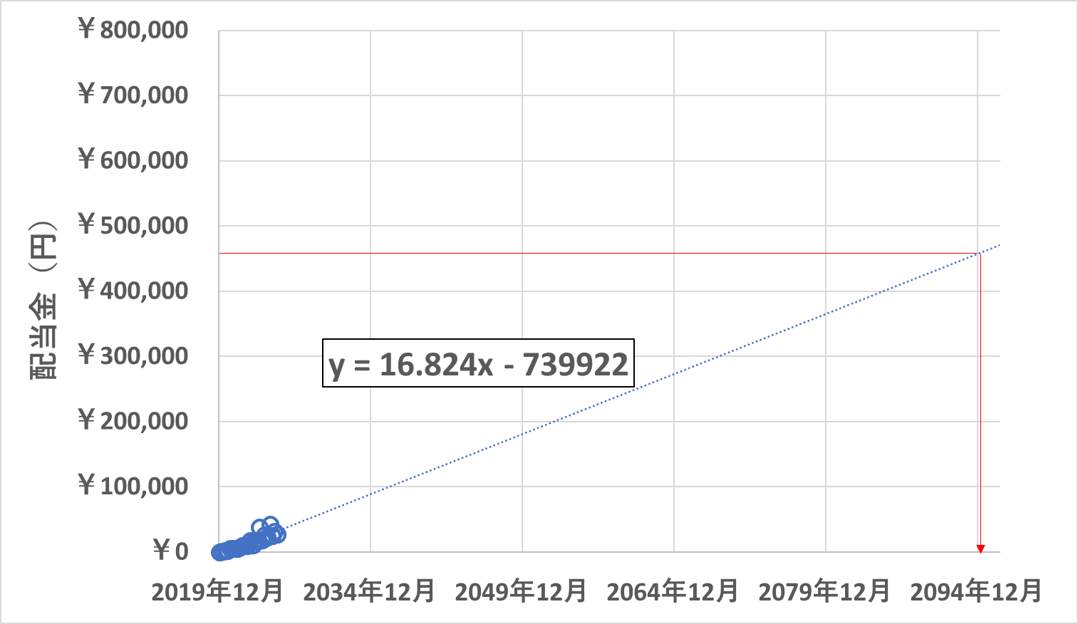 (前回6月配当の時に計算したものでは2092年7月配当だったので、少し後ろ倒しになりましたね。)