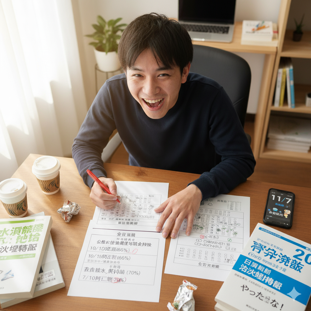 マークミスがなければ、長年の挑戦がついに実を結びます。結果が出るまでに『真面目にコツコツやっておけば一昨年や昨年には…』と少し後悔もしましたが、『継続は力なり』を証明できたのでよしとします!