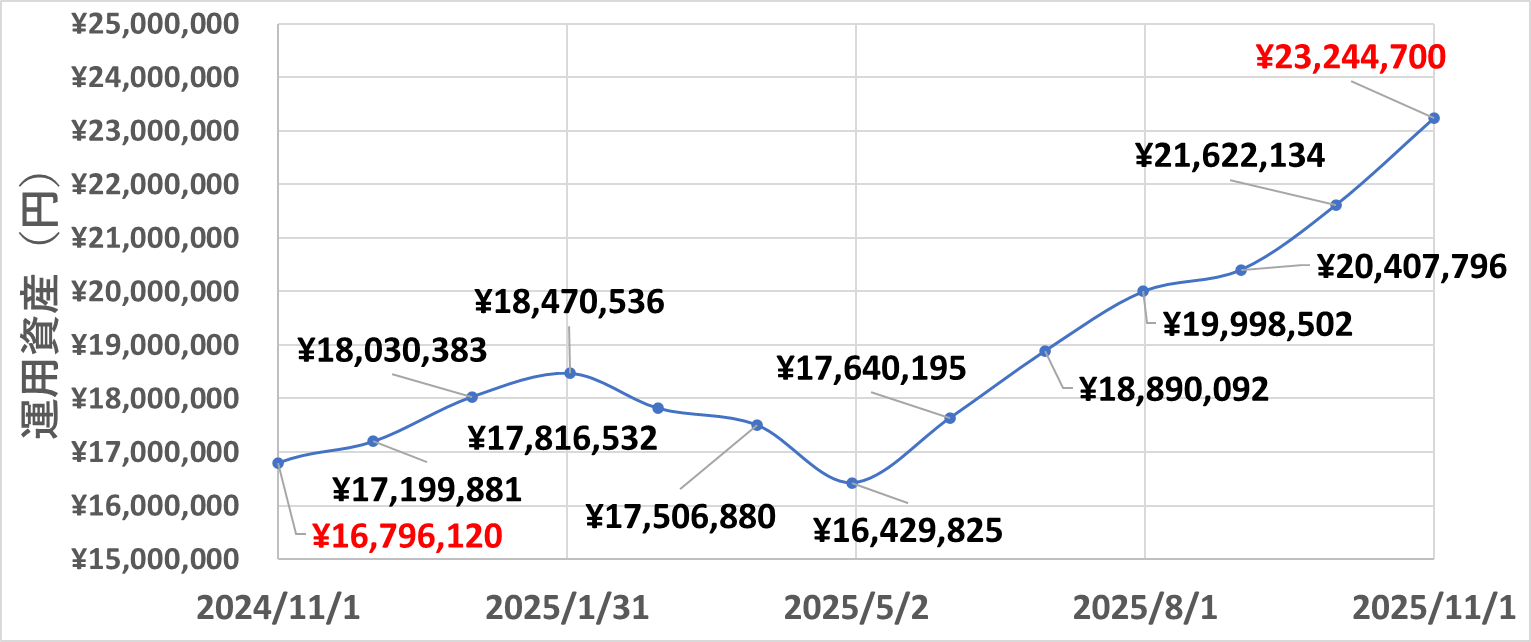 運用額約2,300万円ということで、年利5%で運用できれば現時点で既に115万円/年というポテンシャルを持っているということになります。