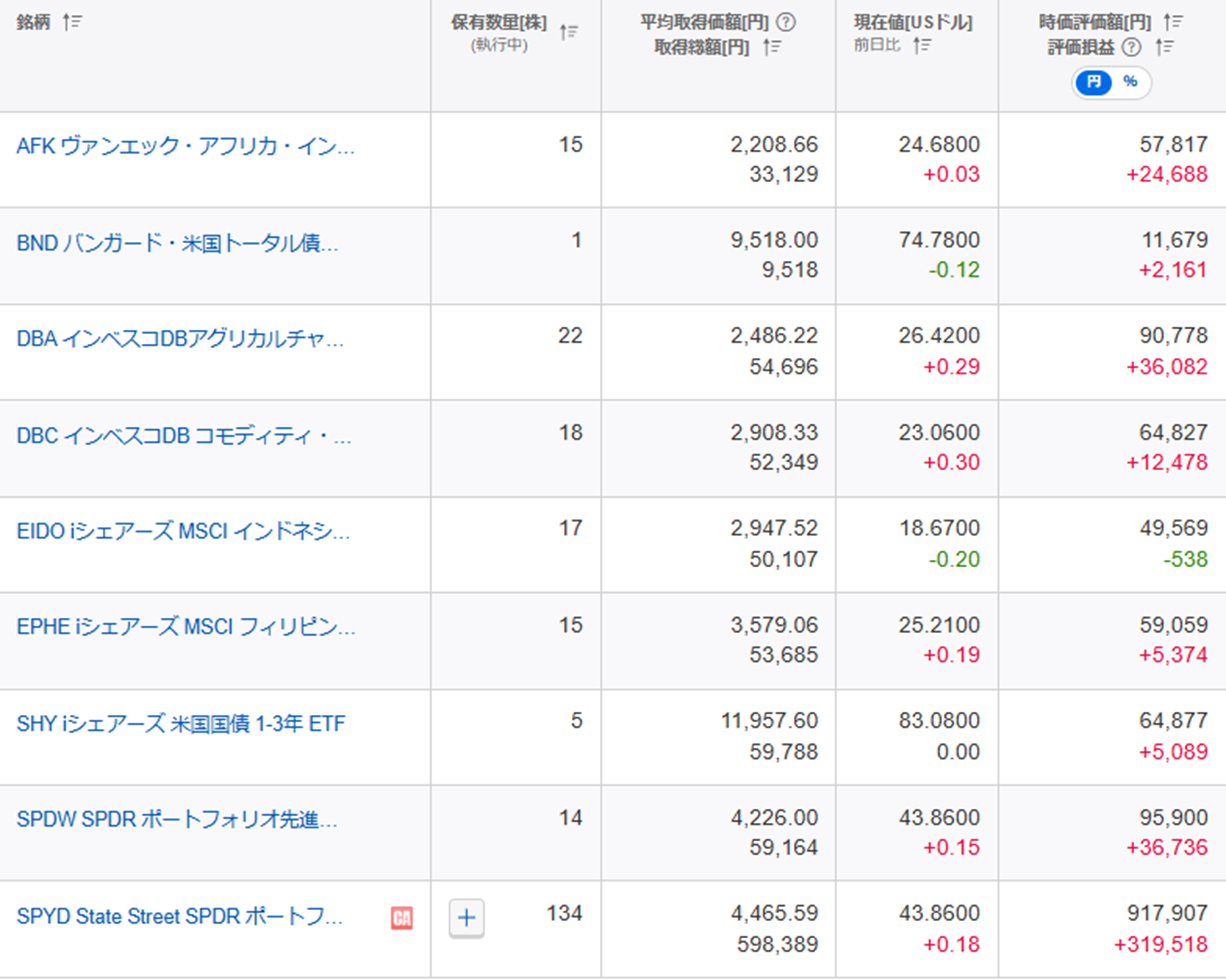 SPYDもしっかりと価格上昇をして、かつ配当もいただけるということになればありがたいことです。私が運用している中で一番愛着があり、頑張ってほしいのがSPYDです。ETFの中で一番最初に購入を始めたものでもあります。