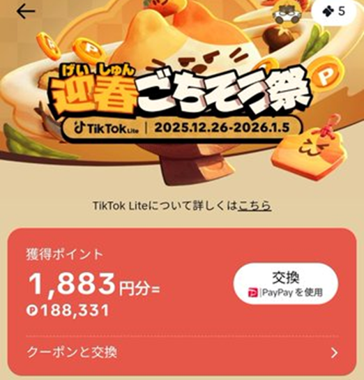 図2:TikTok Lite獲得ポイント画面(左:12月1日時点・右:1月1日時点)