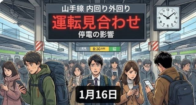 1月16日の大停電トラブル: 変電所トラブルにより山手線・京浜東北線が約8時間ストップ。金曜日、かつ共通テスト前日の「下見日」を直撃した首都圏の混乱を振り返る。