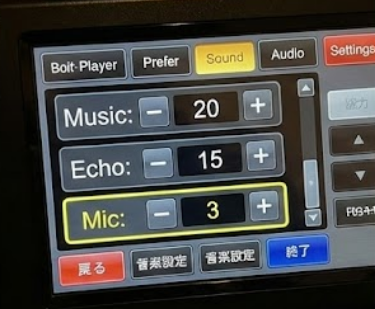 マイク:3~5 あえてマイク音量をかなり小さく設定するのが私流。自分の声をしっかり出し、コントロールするためです。