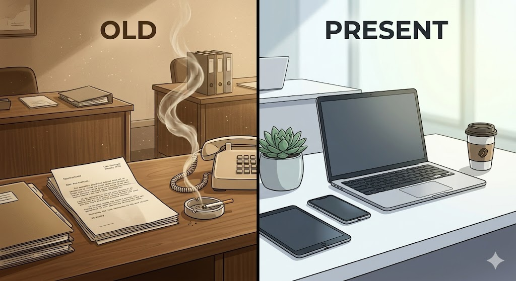 少し上の世代の話を聞くと、昔は「自分のデスクでタバコを吸いながら仕事をする」のが当たり前の風景だったそうです。
