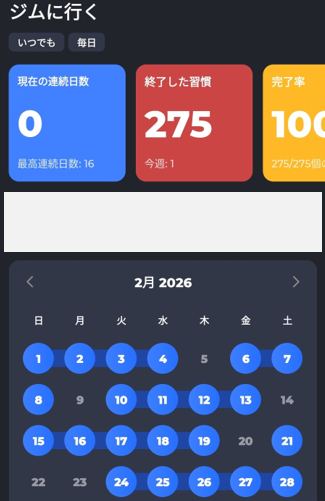 | 継続 | ジム(月14回以上) | 14回 | 27回 | 192% 達成! |
