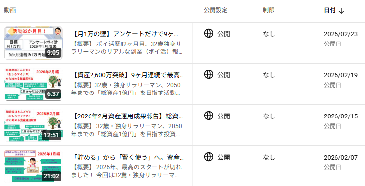 さて、毎月月初恒例の「資産運用」「総資産」「ポイ活」「家計簿」という4大記事に加え、2024年9月から新しく始めた「自分へのノルマ達成状況」を2026年も報告します。