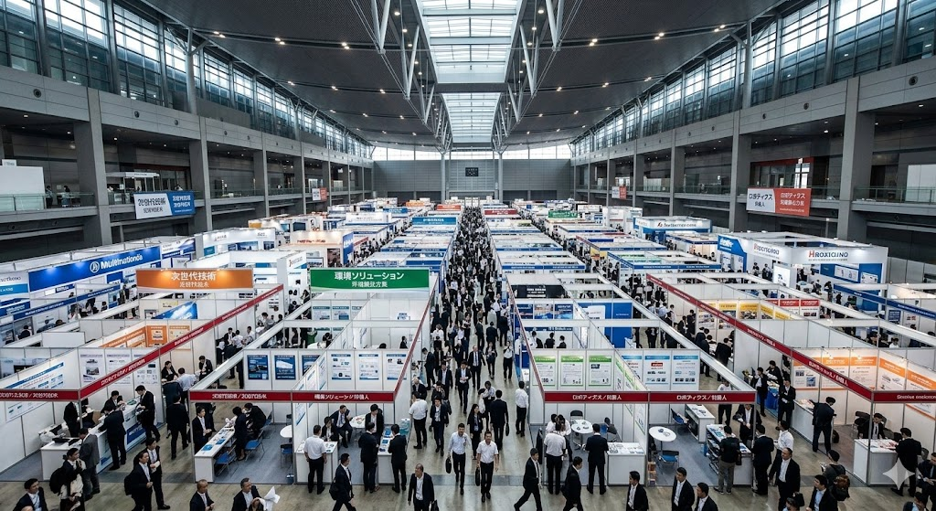 プレゼンの後は、いよいよ初めての海外展示会の視察へ。とにかく規模が日本とは桁違いでした!(画像は実際のものではなく生成AIです。)