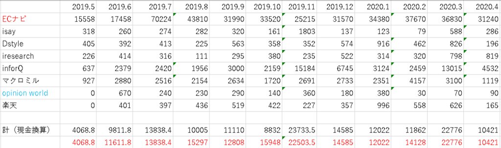 特にマクロミル(トップ3の常連)のアンケートが1/3以下になっていました。