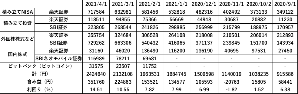 また、いくつかの株については利益確定をしているので、正確な数値ではないですが、含み益も運用利回りが10%を超えてきました。