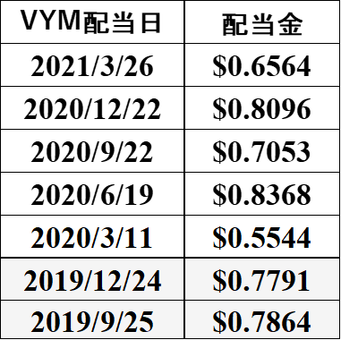 表4 VYM配当推移
