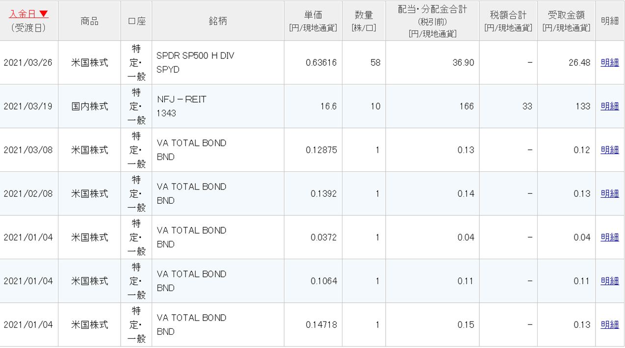 とりあえず、各種配当金については以下のようになりました。