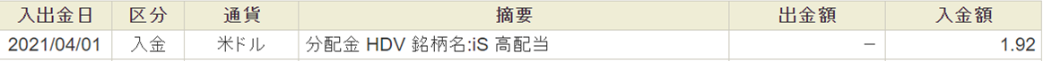 さて、前述のとおり3月は、私が投資しているSPYD、VYM、HDVの配当月です。(HDVの入金が4月に入ってからでしたので、記事の更新が遅れました。)