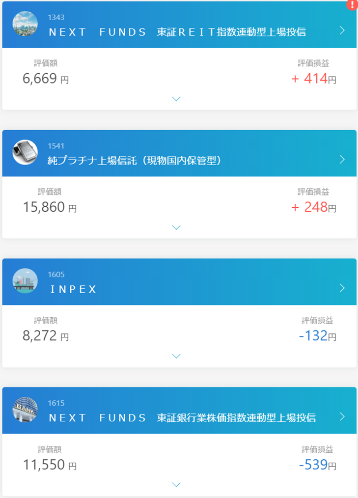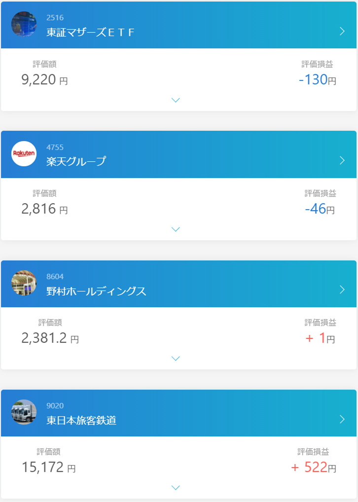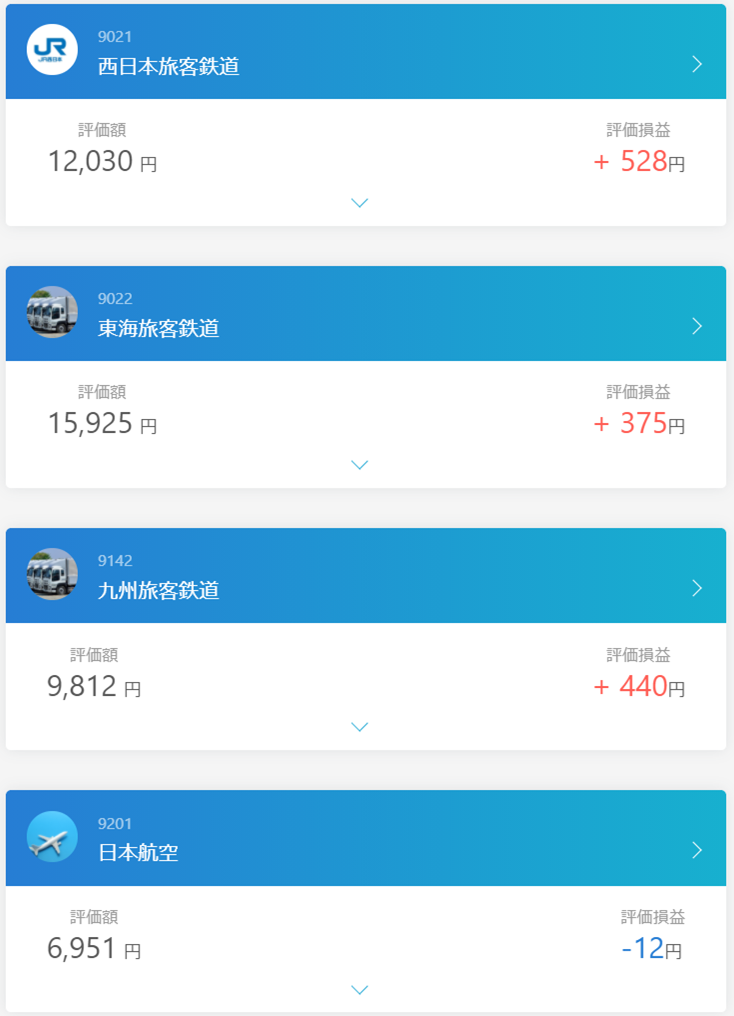 投資を始めたばかりの初心者が伝える投資成果(2021年5月1日現在) 資産運用 X Facebook はてブ LINE コピー 2021.05.012021.07.17 スポンサーリンク ③日本株(ネオモバへ移行) 図7 SBIネオモバイル証券 日本株運用結果 2月、SBIネオモバイル証券での口座開設を行いました。JRと航空株、エネルギー株などの運用を始めています。基本的には、各社1万円前後を上限に集中投資しないことに決めました。 こちらも様子を見ながら追加投資ができると良いですね。 前へ次へ 1234
