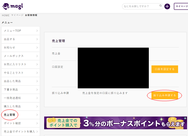 売上報告の前に…。 毎月売り上げの報告をしていますが、先月までで約37,000円の売上がありました。だいぶ貯まってきたので、そろそろ売り上げを回収してみようというわけで、売り上げ37,550円時点での回収を行いました。1分ほどで手続きは完了!